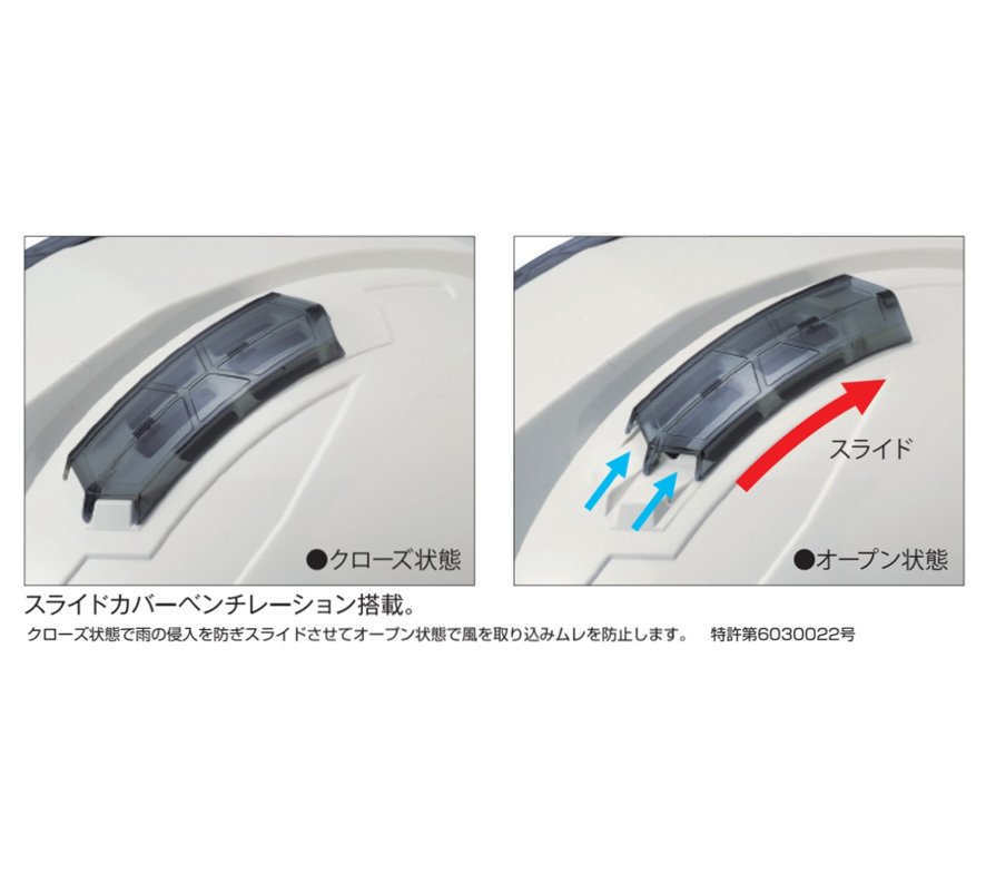 新型通気孔スライドベンチカバー搭載ヘルメット
